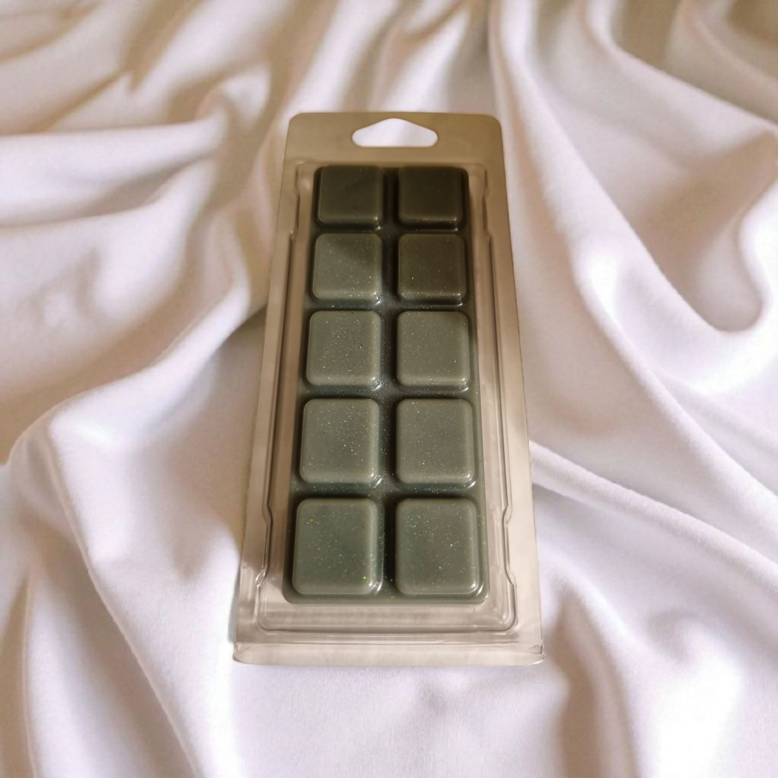 Diep donkergroene wax met subtiele shimmer en fijne glitter, wat deze waxmelts een luxe en mysterieuze uitstraling geeft.