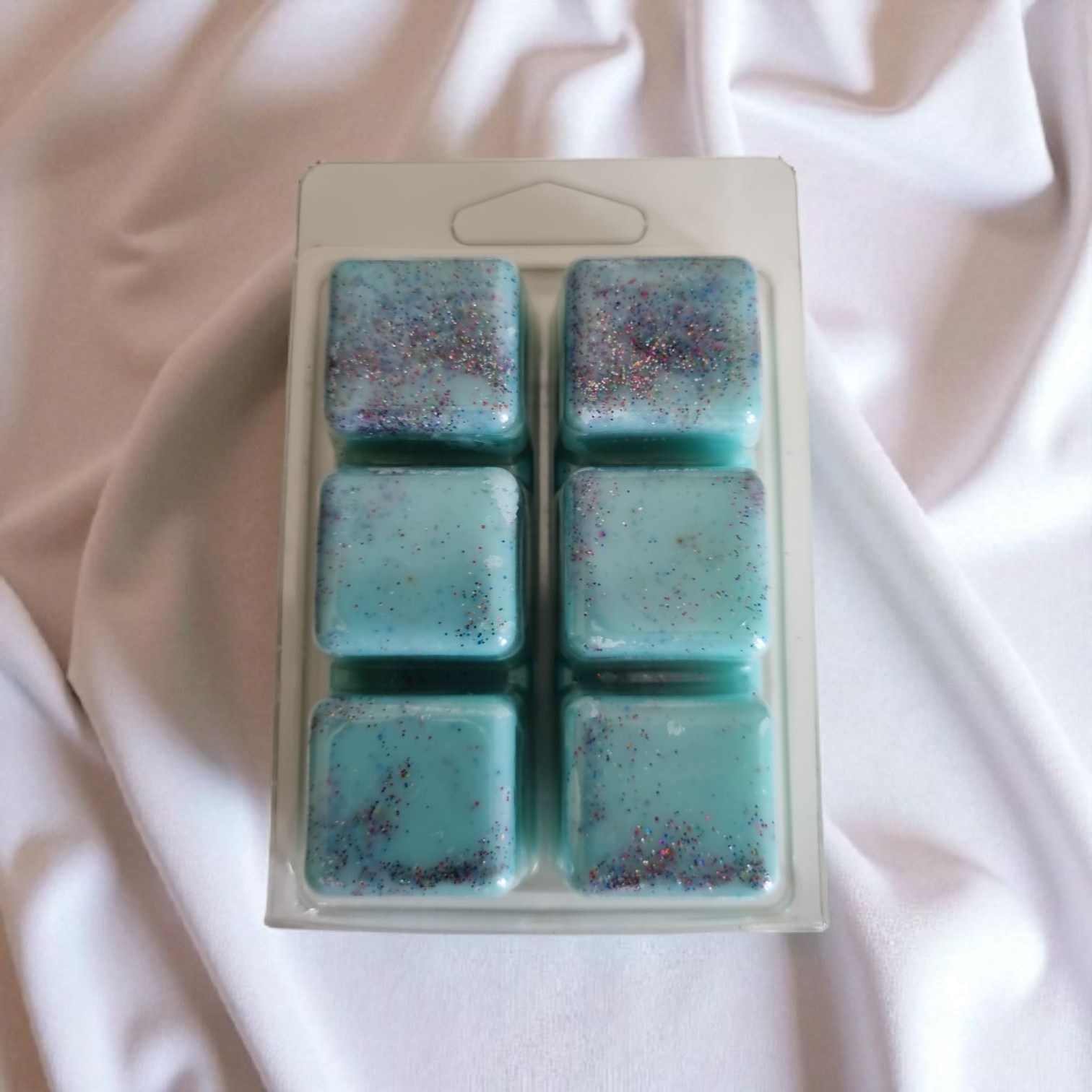Fris turquoise wax met subtiele shimmer en holografische glitter voor een moderne, sprankelende uitstraling.