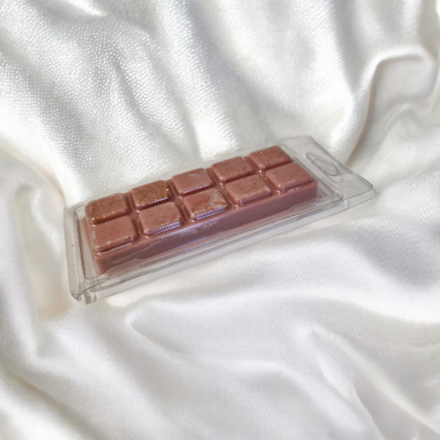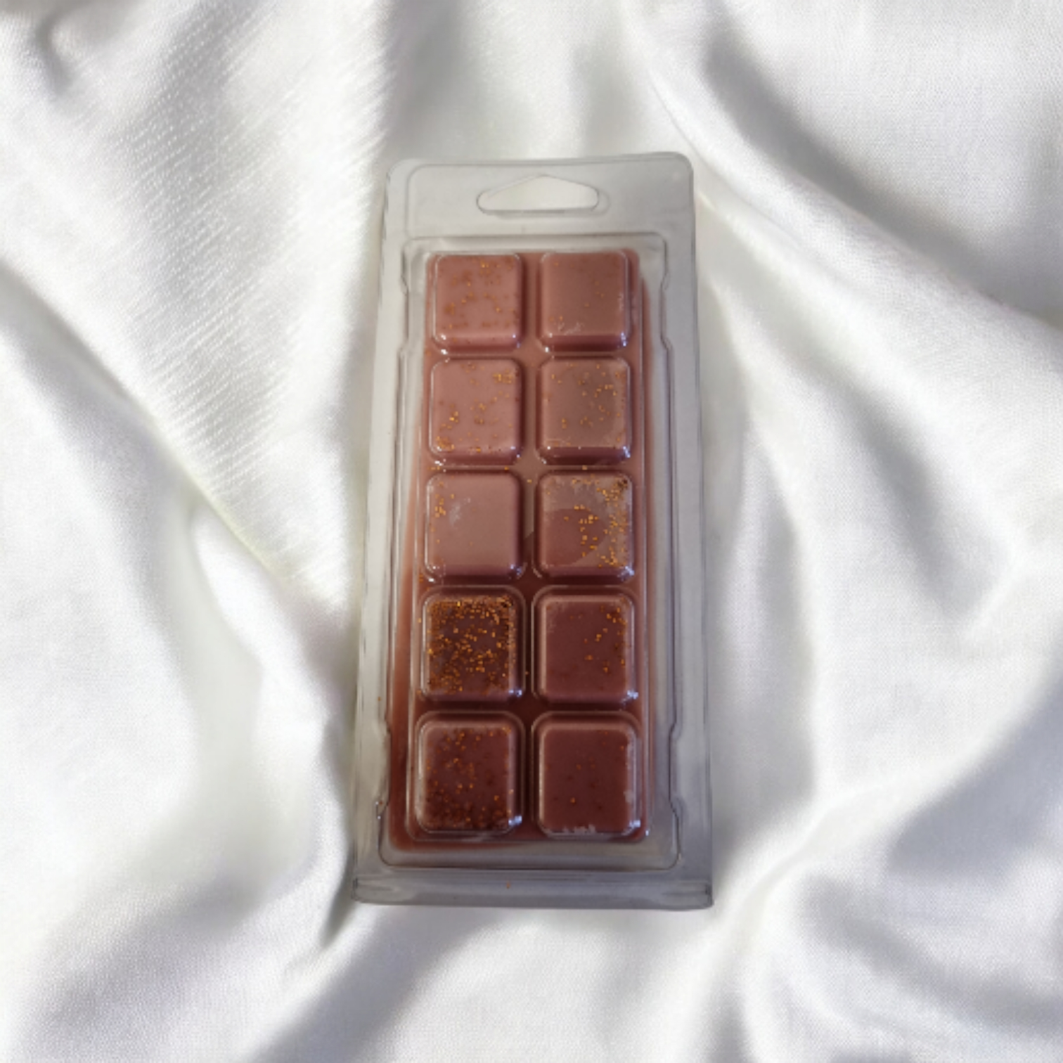 Donkerbruine waxmelts met subtiele gouden shimmer en lichte glitteraccenten.