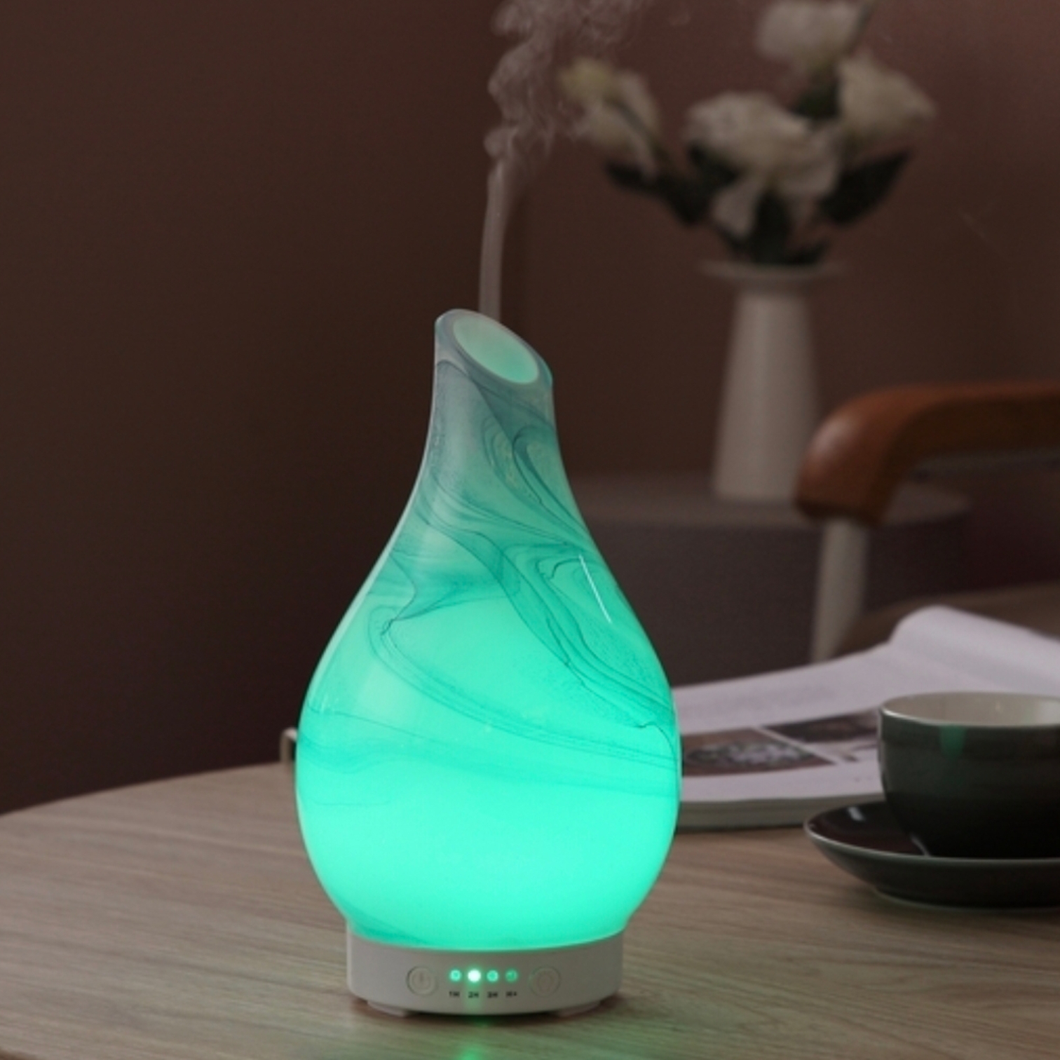 De diffuser werkt met koude ultrasone diffusie, waardoor essentiële oliën hun volledige werking behouden. De fijne nevel verspreidt geur tot ongeveer 40 m² en zorgt voor een rustige, ontspannen sfeer in huis. Dankzij de stille werking is de diffuser geschikt voor gebruik in woonkamers, slaapkamers, meditatie- en ontspanningsruimtes.