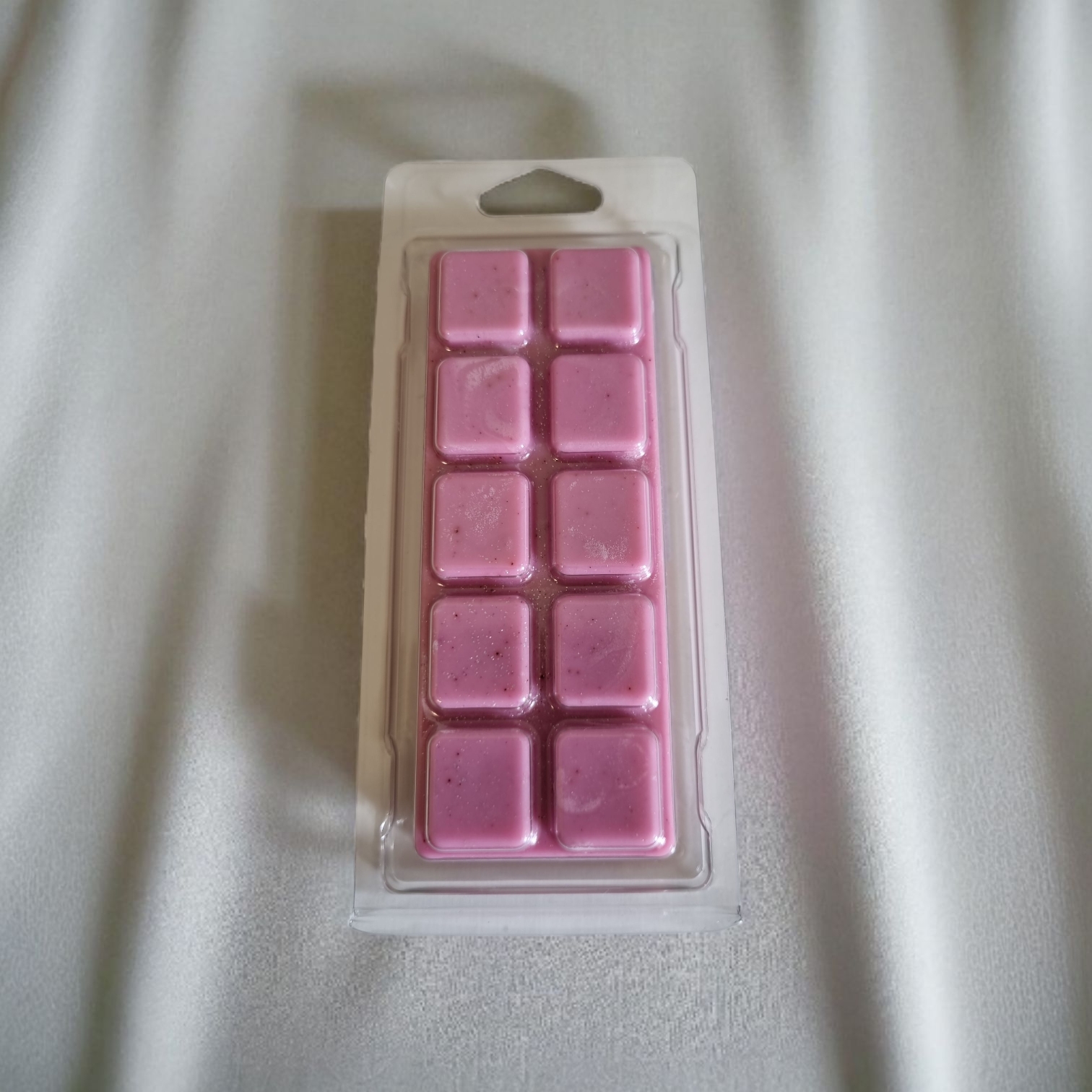 Zacht oudroze wax met subtiele shimmer en een zichtbaar swirl-effect door mica in de pan. Afgewerkt met lichtroze glitter bovenop voor een elegante uitstraling.