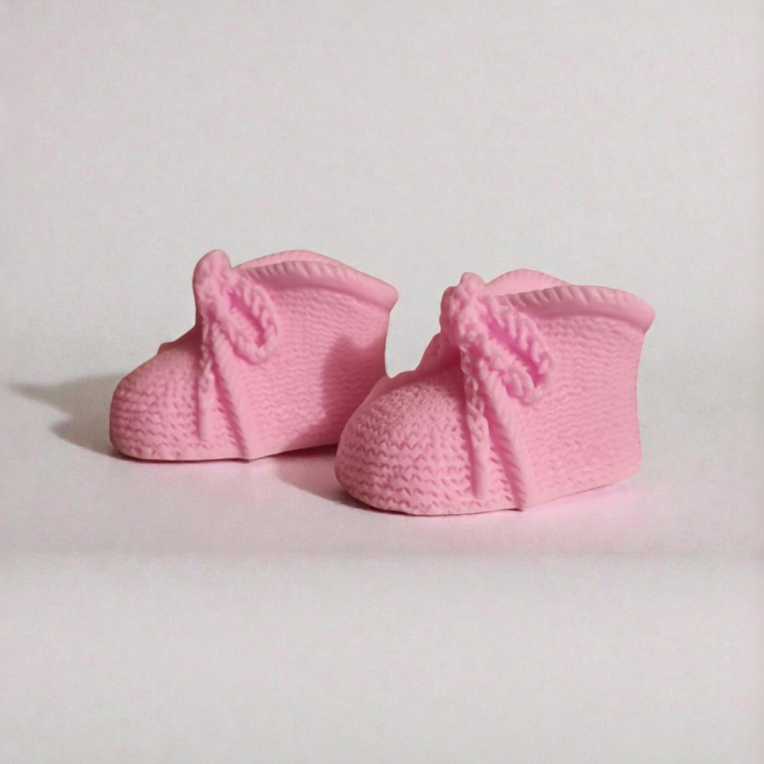 Deze handgemaakte baby schoentjes van zeep zijn een liefdevol en uniek cadeau voor een babyshower, kraamfeest of als decoratief detail in de babykamer. De set bevat twee roze schoentjes, zorgvuldig gegoten en afgewerkt.