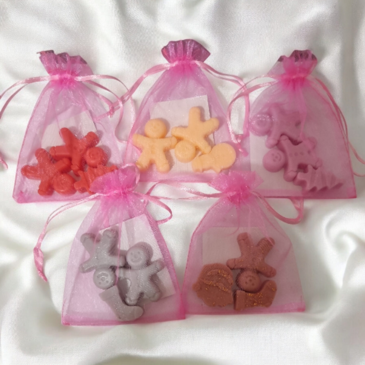 De bijpassende mini waxmelts zijn gegoten in leuke kerstfiguurtjes zoals gingerbread, kerstboom, cadeautje, sneeuwpop en candy cane. Het pakket bevat vijf afzonderlijke zakjes van elk ongeveer 20–25 gram. Je ontvangt altijd minimaal 100 gram waxmelts, vaak zelfs iets meer. Deze set is ideaal om verschillende wintergeuren te ontdekken of om cadeau te geven tijdens de feestdagen.