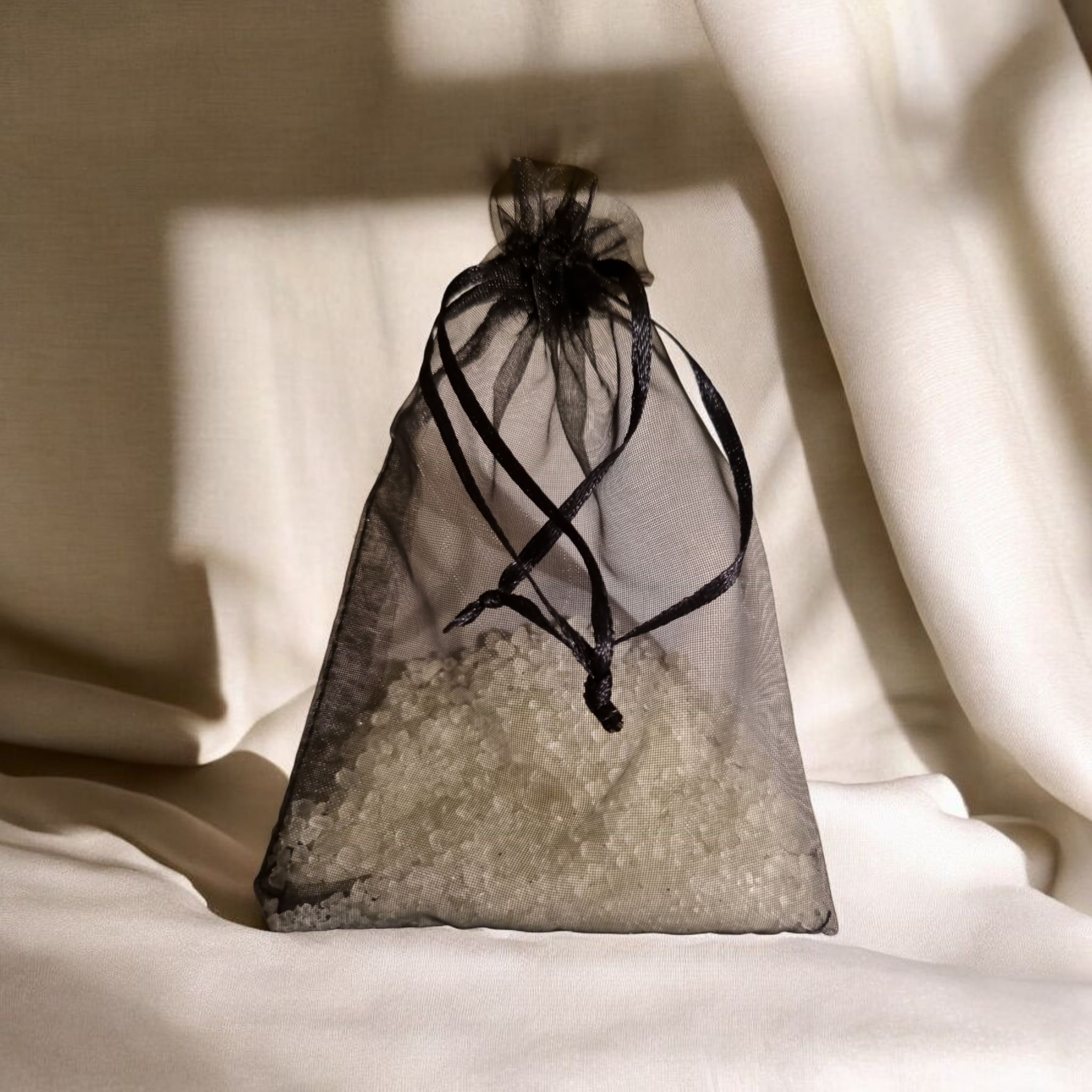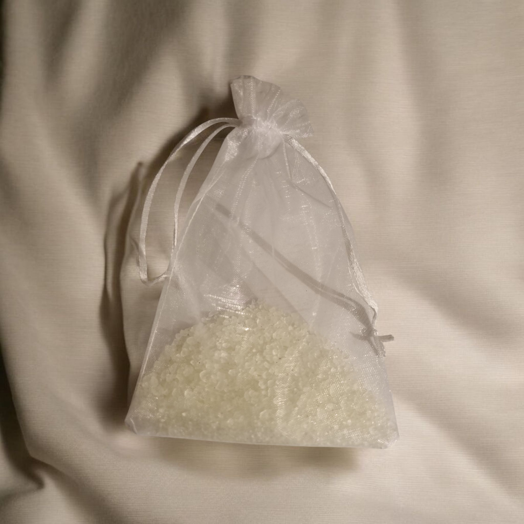 Kleur & afwerking: Lichtgele geurkorrels in een luxe organza zakje.
