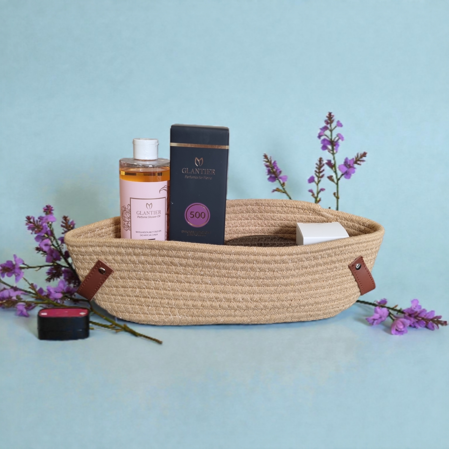 Wordt geleverd in een grijs, bruin of wit mandje.
