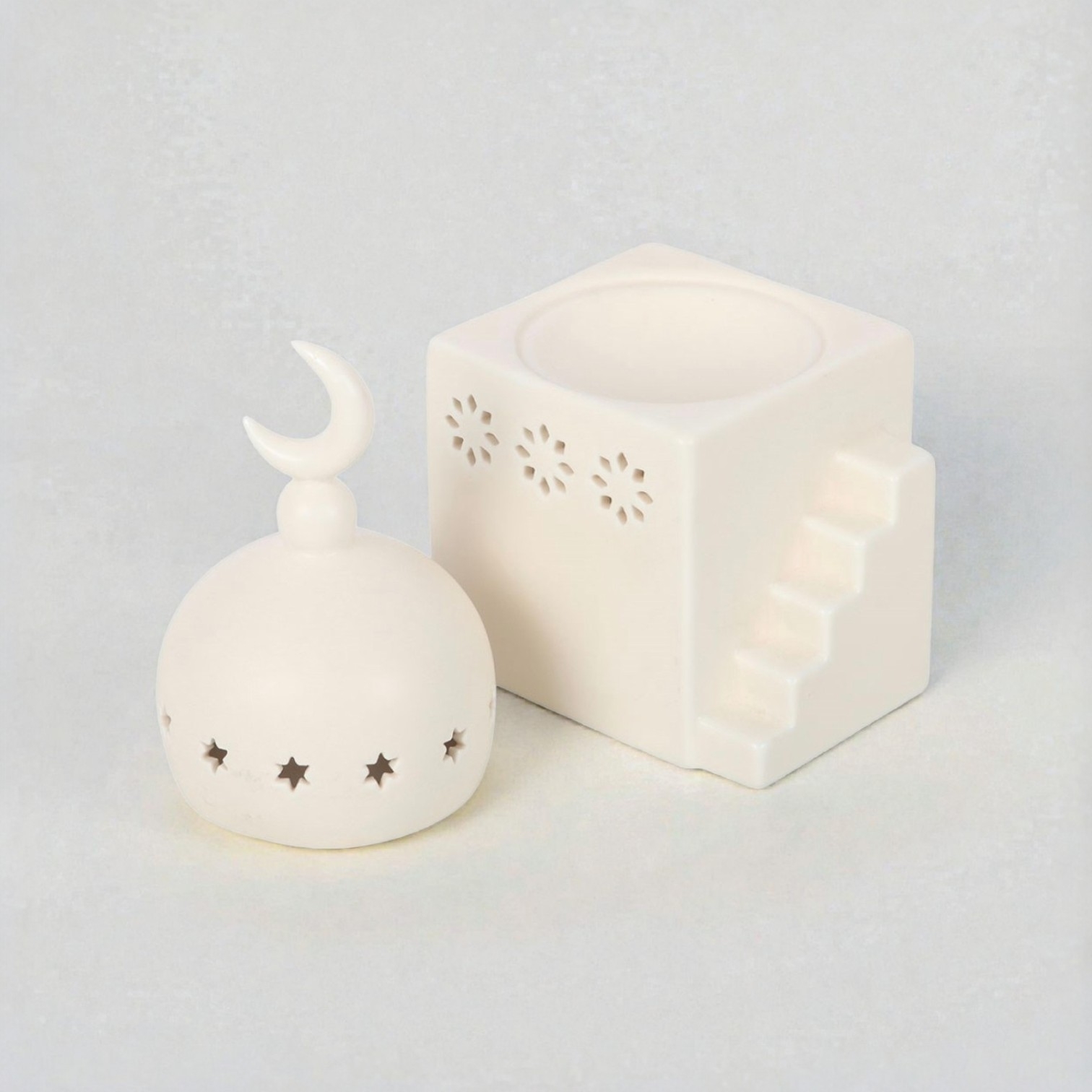 Breng warmte, sfeer en een oosterse uitstraling in huis met deze prachtig vormgegeven moskee geurbrander. Het ontwerp met verfijnde uitgesneden details zorgt voor een zacht en rustgevend lichtspel wanneer de brander wordt gebruikt en maakt deze brander bijzonder geschikt voor een gebedsruimte of als sfeervolle decoratie tijdens Ramadan en Eid.
