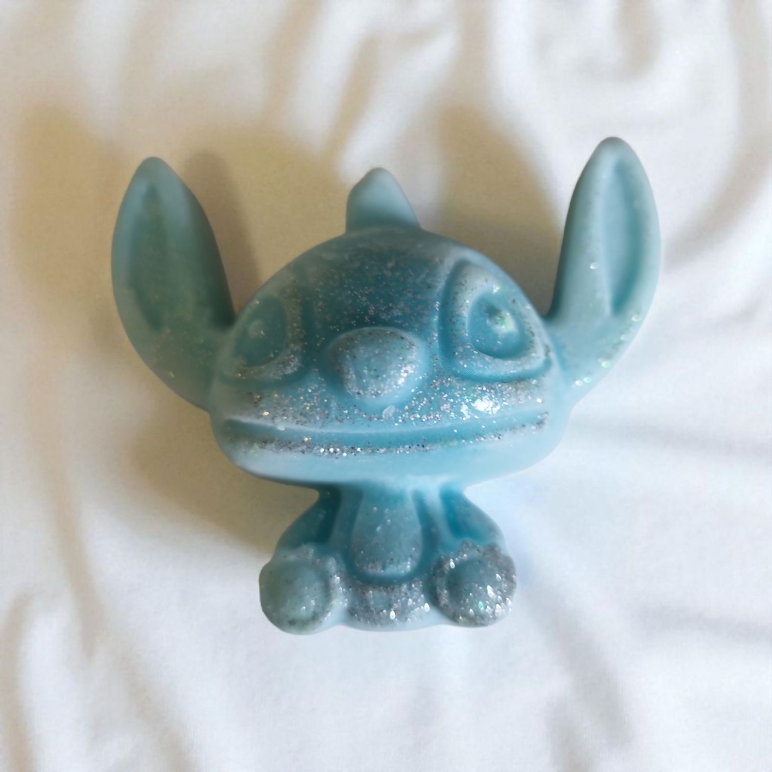 Kleur & afwerking: Blauw Alien waxfiguurtje met subtiele glitters die een zachte glans geven tijdens het smelten.