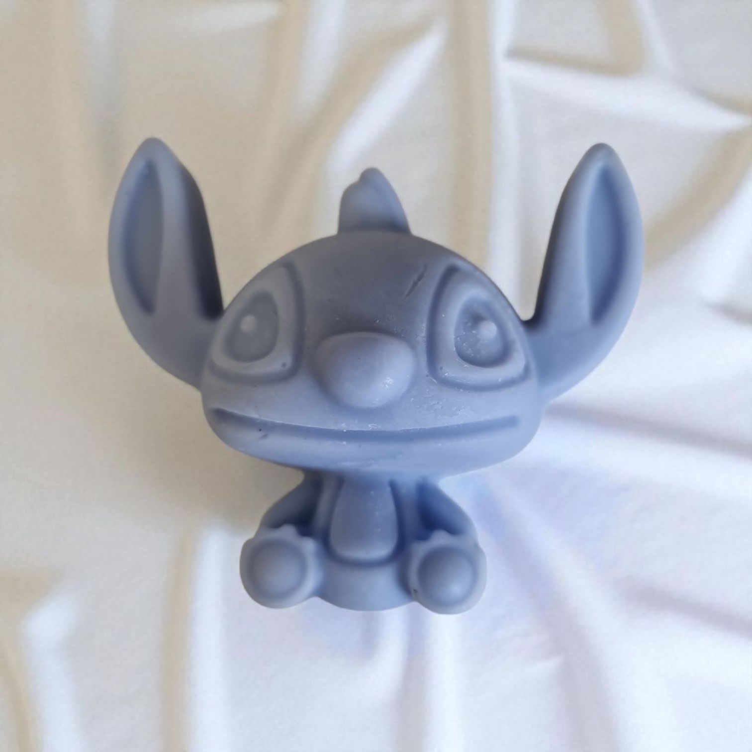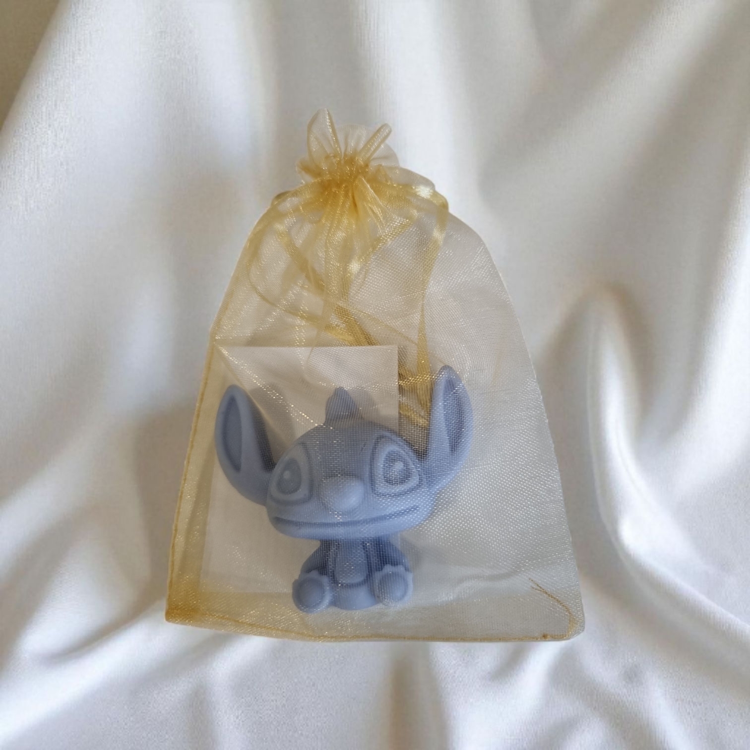Kleur & afwerking: Blauw Alien waxfiguurtje, strak gegoten zonder mica of glitters. Geleverd in een organza zakje.
