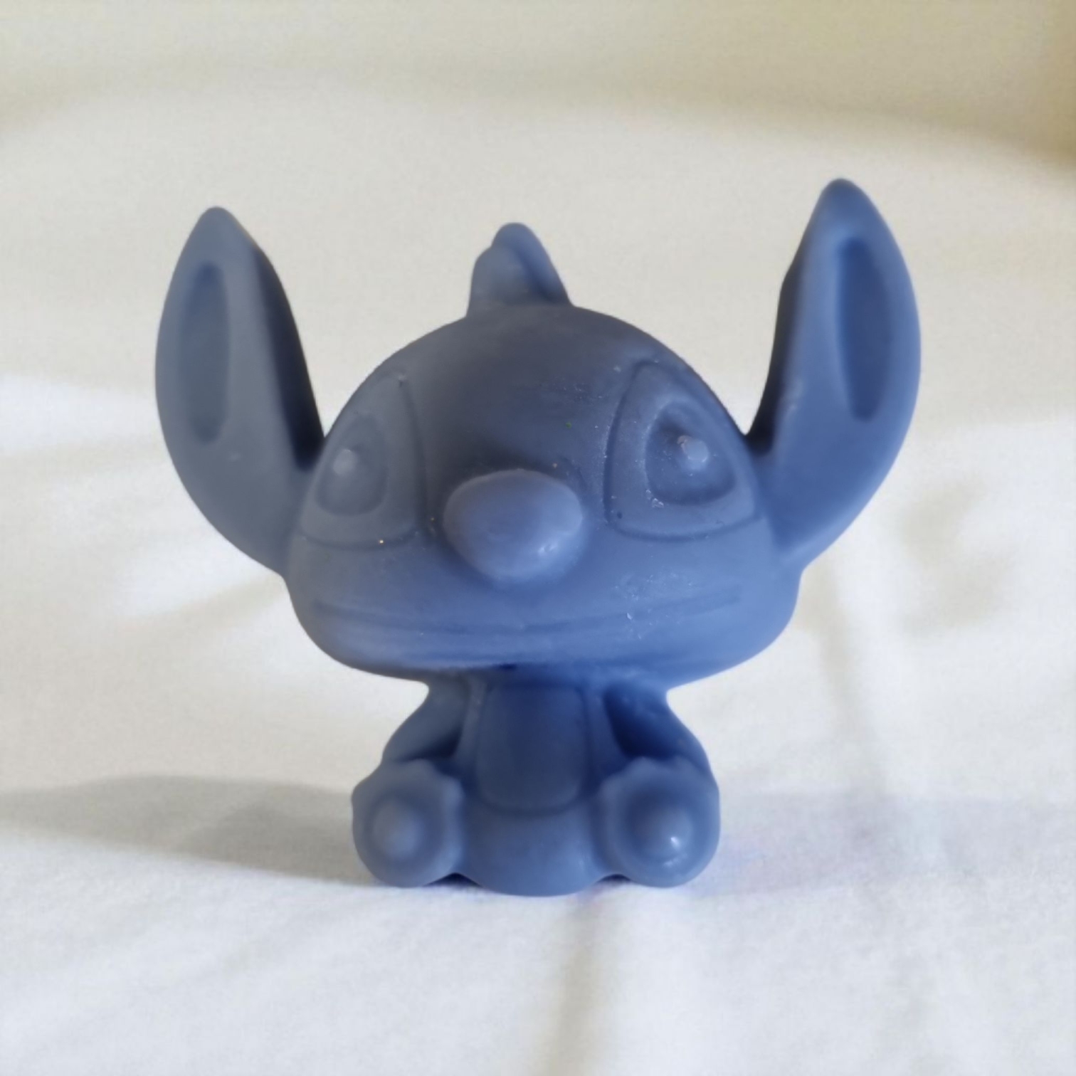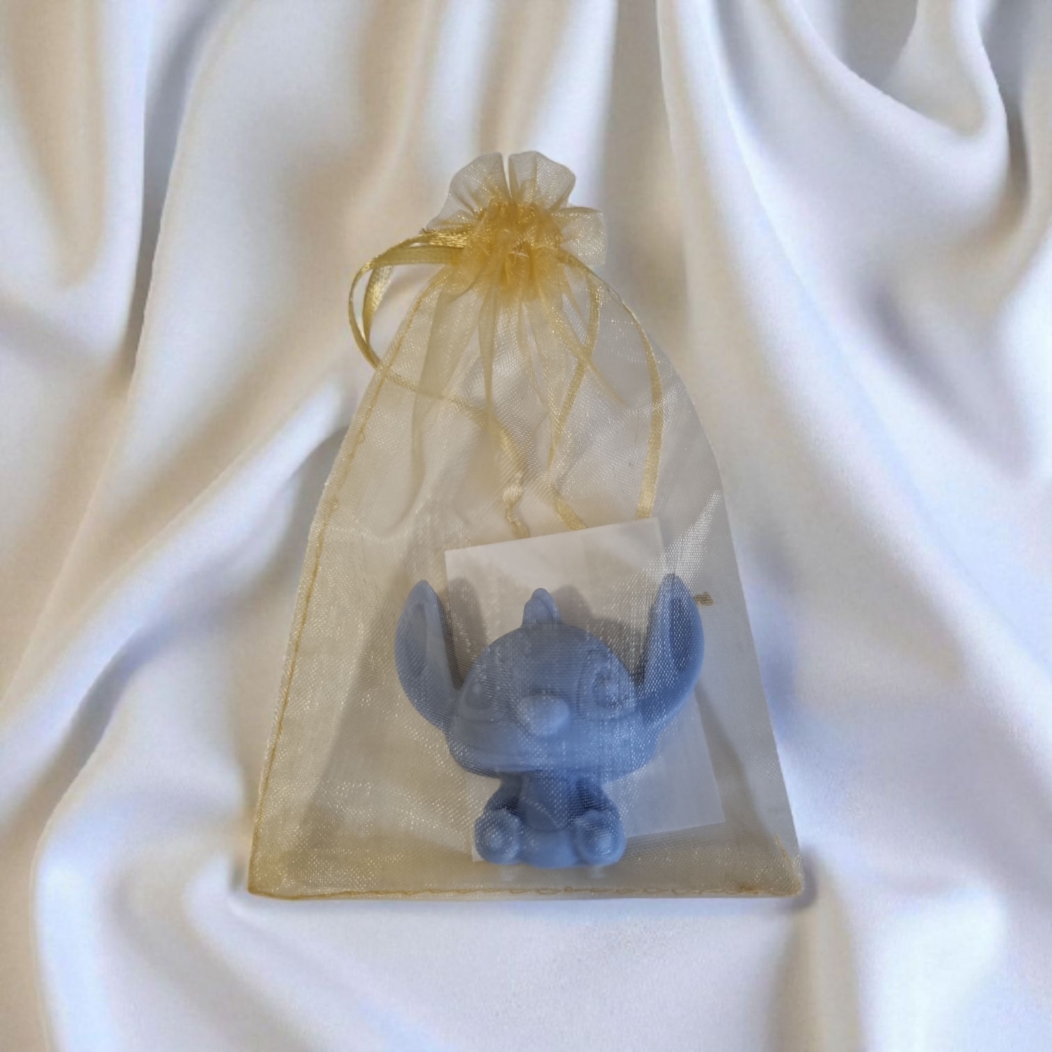 Kleur & afwerking: Blauw Alien waxfiguurtje, clean gegoten zonder mica of glitters. Geleverd in een organza zakje.
