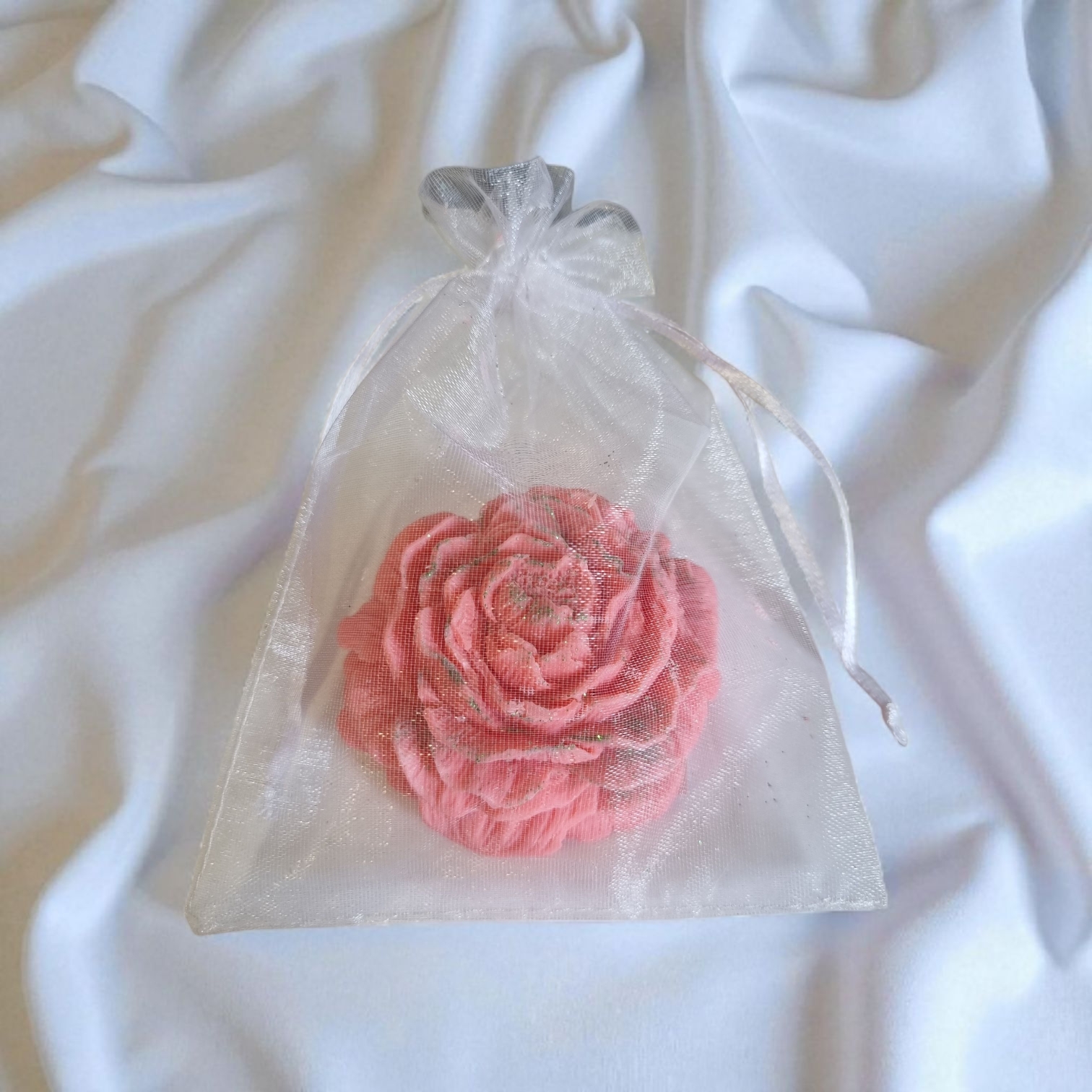 Roze roos waxmelt, afgewerkt met subtiele glitters die een zachte glans geven tijdens het smelten
